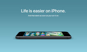 For example, this iPhone ad. "Life is easier on iPhone." Targeting all groups, and telling them that their lives will be easier with an iPhone. It is a simple statement. They follow up with saying, "And that starts as soon as you turn it on." It is as simple as that. A technique they use is simple solutions. It is very apparent that as long as you buy and iPhone and as soon as you press the on button, your life is that much easier. Emotionally you will feel less stressed and more happy if you buy an iPhone.